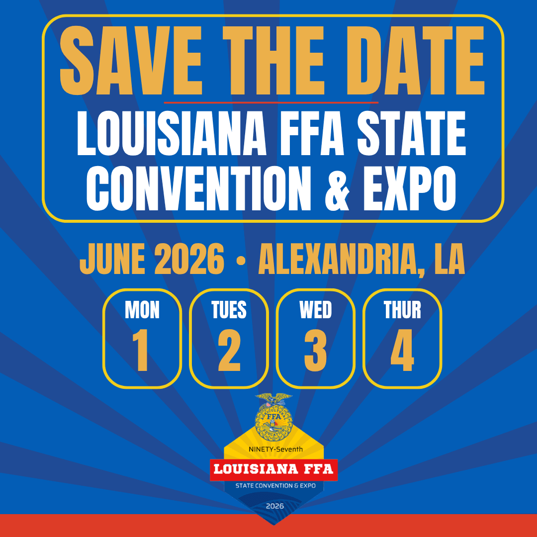 The 97th Louisiana FFA State Convention and Expo is coming! Get ready to join nearly 2,000 of your closest friends for an agricultural celebration like no other!